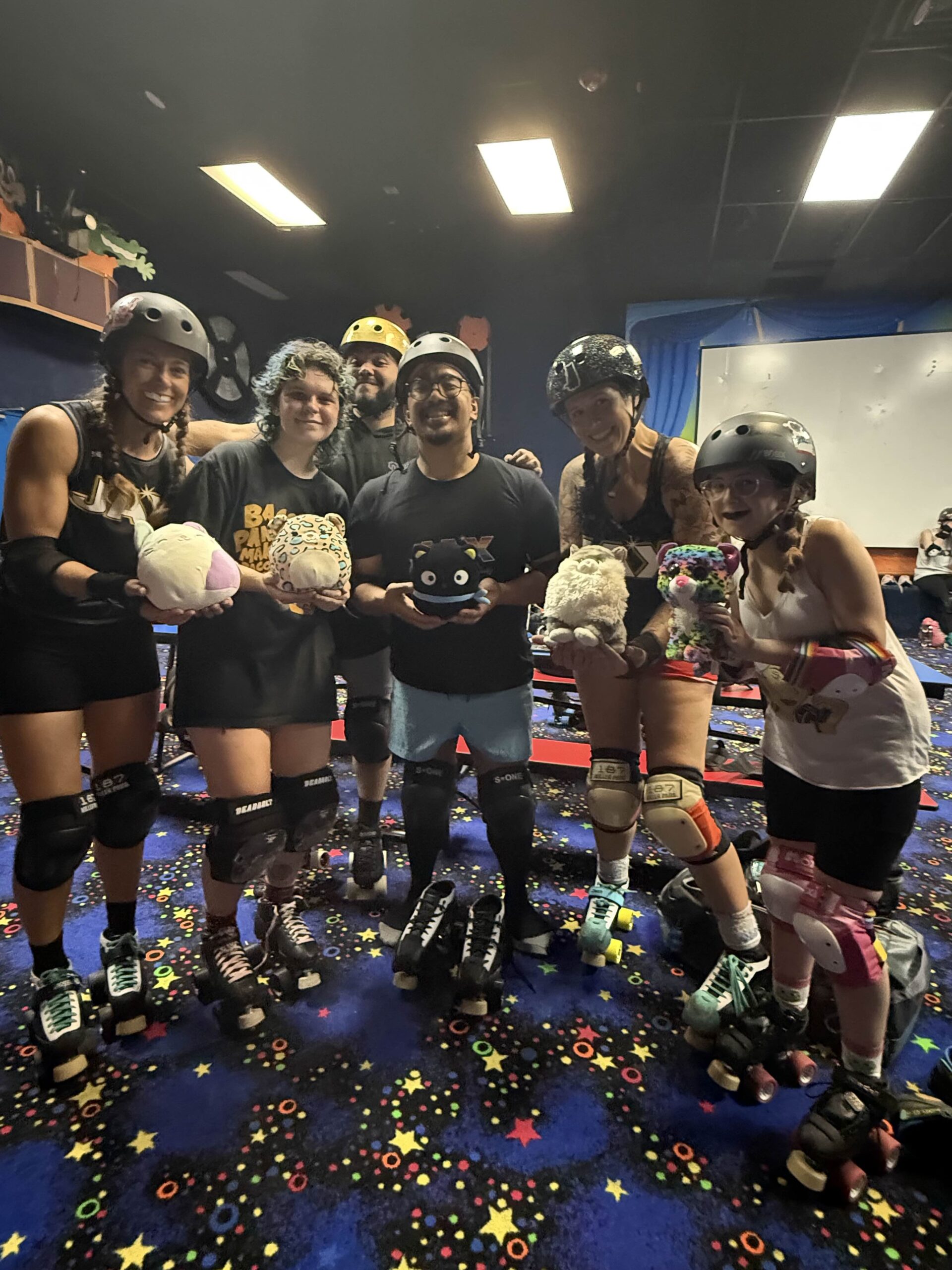 Meet your trainers, learn a little about the league, and start rolling around. The trainers will observe your basic skating skills. Skating forward, backwards, crossing over your step at the turns, recovery from the ground, and overall balance/control.